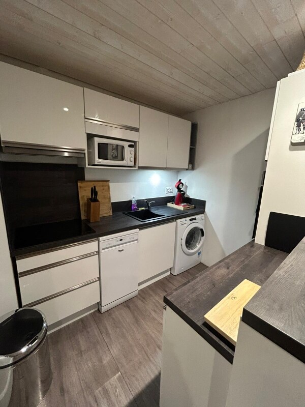Studio cabine rénové 11/2019, balcon fermé et volet roulant, 2ème étage ascenseur, vue magnifique sur la vallée. Au rdc, commerce, bar, restaurant, location, ESF.. Pistes au pied du bâtiment. NON FOURNIS linge de maison, de lit, draps, serviette, duvet. FOURNIS : couettes, couvertures, oreillers, rangements. Prix selon période+ conso EDF en hiver, relevé. Vacances fin d'année, hivers, réservation à la semaine. Epicerie ouverte saison ski, hors saison commerce dans la vallée. Parking. Local ski