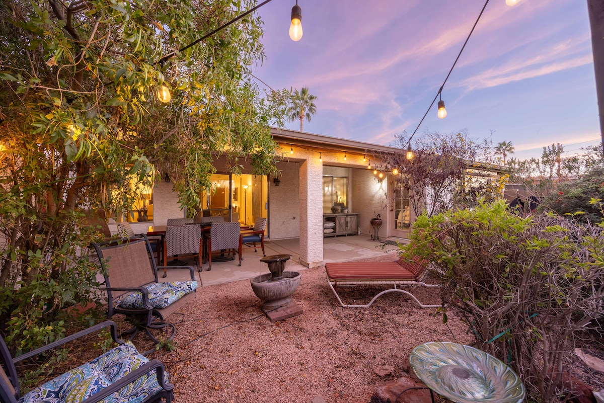 En fridfull oas i öknen! Lugnt, mysigt och vackert. BOENDET Välkommen till din privata gästlägenhet fylld med naturligt ljus. Ditt utrymme inkluderar: - Stort sovrum med Queen-säng - Bäddsoffa - Pentry med mikrovågsugn, spis, kylskåp, handfat - Komplett badrum - Klädkammare - Privat uteplats med enorm bubbelpool! - A/C, wi-fi, TV, dubbelsäng och en soffa. I NÄRHETEN Du kan också få tillgång till privata pooler, golfklubbar, disc golf parker, och en hel del stigar att vandra.