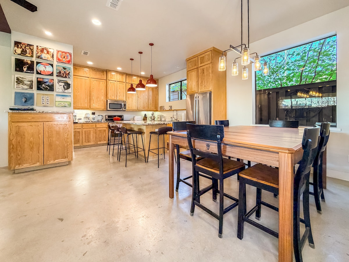 Upptäck modern lyx mitt i Dallas med bara 5 minuter från centrum. Detta nya moderna hus blandar komfort med chic design och erbjuder det perfekta utrymmet för dig, din familj och vänner. Koppla av i det rymliga vardagsrummet och njut av ett helt nytt spelrum med alla kingsize-sängar. Oavsett om du söker avkoppling eller ivrig att utforska den lokala scenen ger detta eleganta boende en förhöjd upplevelse av lyxigt boende. Även bra för vistelser på över 30 dagar för företagsboende, flytt med försäkring och mycket mer!