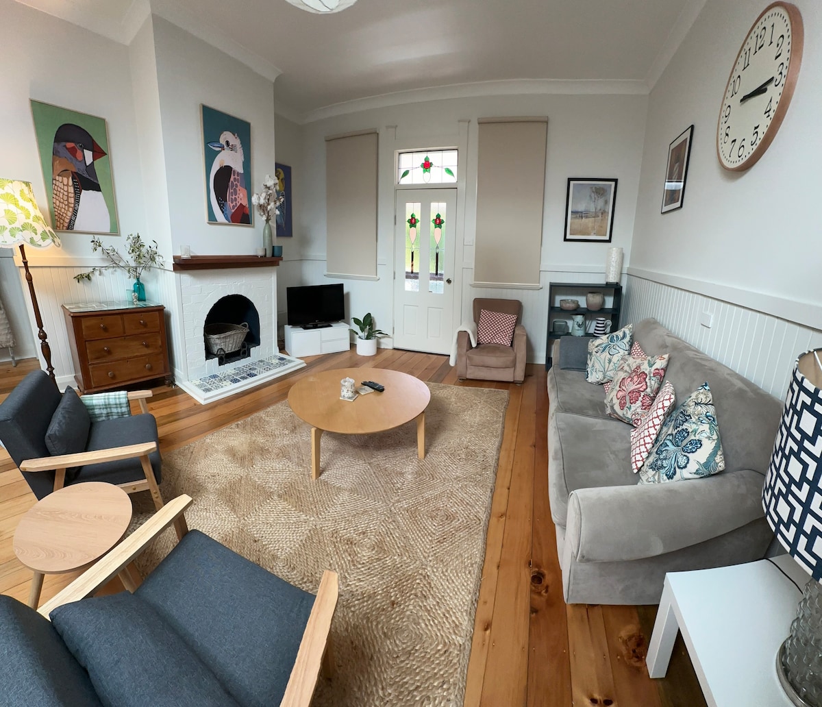 Snyggt renoverad stuga, med utsikt över Curtis Park. Ett kvarter till centrala Armidale, med restauranger, kaféer, pubar och stormarknader inom gångavstånd. Armidale Farmers Market i parken tvärs över vägen varannan söndag i månaden. Nytt kök med moderna apparater (kylskåp i full storlek, diskmaskin, gasspis, ugn och mikrovågsugn), Nespresso-kaffemaskin och kapslar, luftfritös Höghastighetsinternet med obegränsad data Smart 65'' TV med Netflix Master med ensuite Öppen spis Omvänd luftkonditionering