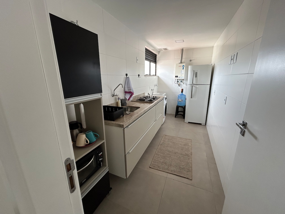 Modern and welcoming apartment, decorated for comfort and convenience. Functional space with Wi-Fi and TV, ideal for couples, business trips or leisure travel. It has a balcony and a compact kitchen, without a built-in stove. We provide a portable stove upon prior consultation with the host, Mr. Paulo, and subject to availability.