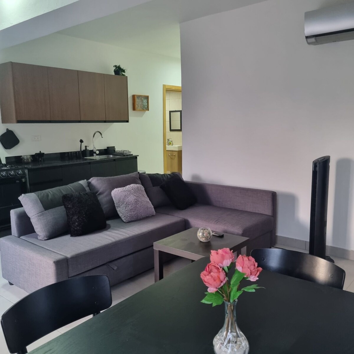 Välkommen till vår studiolägenhet i ett centralt och säkert område nära den botaniska trädgården i Santo Domingo! bara några minuter från det amerikanska konsulatet och de viktigaste kosmetiska kirurgiska klinikerna i staden, såsom CECILIP och Clínica Rejuvenate, samt nära Agora Mall och Galería 360. Vi har privat och säker parkering, övervakningskameror och ett snabbt internet, perfekt för de som arbetar på distans.