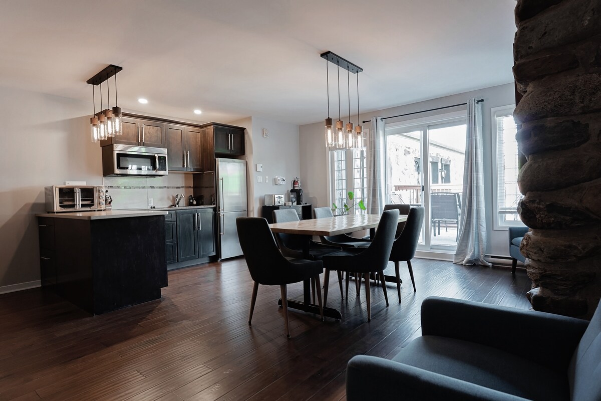 Rifugio är den perfekta platsen att ta sin tillflykt. En fristad omgiven av berg så långt ögat kan se. Rifugio erbjuder dig friheten att skapa en autentisk koppling till naturen och njuta av kvalitetstid ensam eller med andra. Så snart du går in genom dörren, välkomnas du i en varm och bekväm atmosfär. Stora fönster erbjuder en magnifik utsikt över de omgivande bergen och på avstånd kan vi se spetsen av Lac Mégantic.