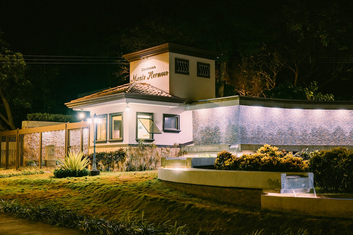 En av de bästa havs- och bergsutsikterna i Playas del Coco! Vi välkomnar alla! Perfekt för par, familjer och distansarbetare. Fullt utrustat hus, beläget på toppen av ett berg inuti ett inhägnat samhälle, 10 minuters promenad till stranden. Mataffärer, restauranger och butiker i närheten. Kort bilresa från Liberias flygplats (20 min). Njut av en konsert med fåglar och apor varje skymning och gryning, spektakulär solnedgångsutsikt över Playas del Coco. Nära naturen, men inte långt borta från råvaror!
