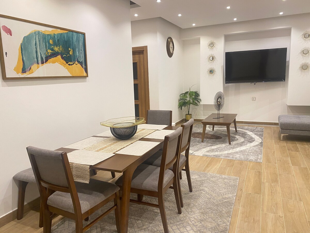 Elite 1 bedroom Apartment in Muscat Bay!exclusive beachfront gated compound. - Direct Access to a Private Beach -Resort-Style Swimming Pool + a vibrant kids’ play area -Cinematic Experience, largest smart TV. -Top-Tier kitchen Appliances in home— outdoor BBQ area. -Dedicated Car parking lot -Fast Wi-Fi -large balcoby with Pool and green view -multi capsule coffee machine -washing machine -super market delivery and cleaners on call