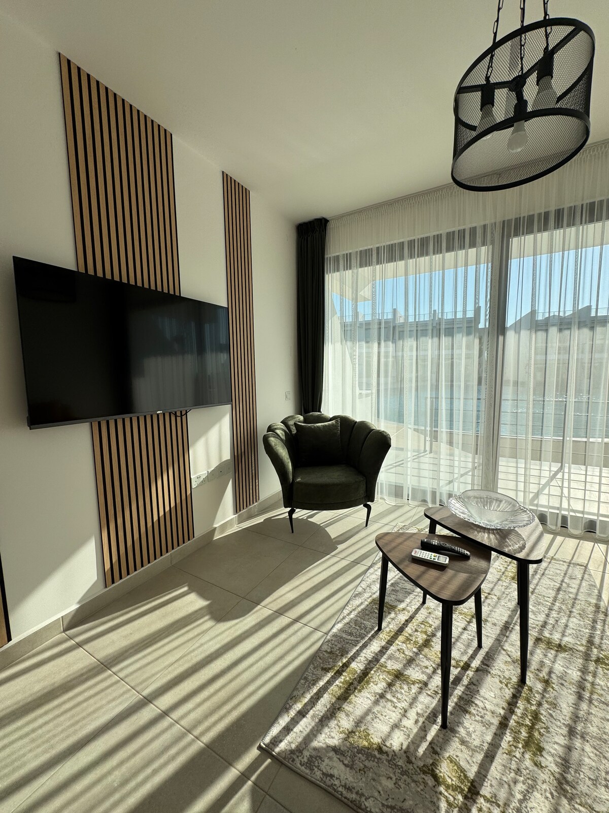 Upplev exklusiv boende komfort i vår rymliga lägenhet! Det moderna, öppna köket-vardagsrummet erbjuder utrymme för att koppla av och njuta. Höjdpunkten är de två uteplatserna: en privat terrass att koppla av på och en stor takterrass med hisnande havsutsikt. 🌊 Resortkomplexet har flera pooler, ett fitnessområde, ett exklusivt café och direkt tillgång till stranden. Luftkonditionering, Wi-Fi och bekvämligheter av hög kvalitet garanterar din komfort. ✨