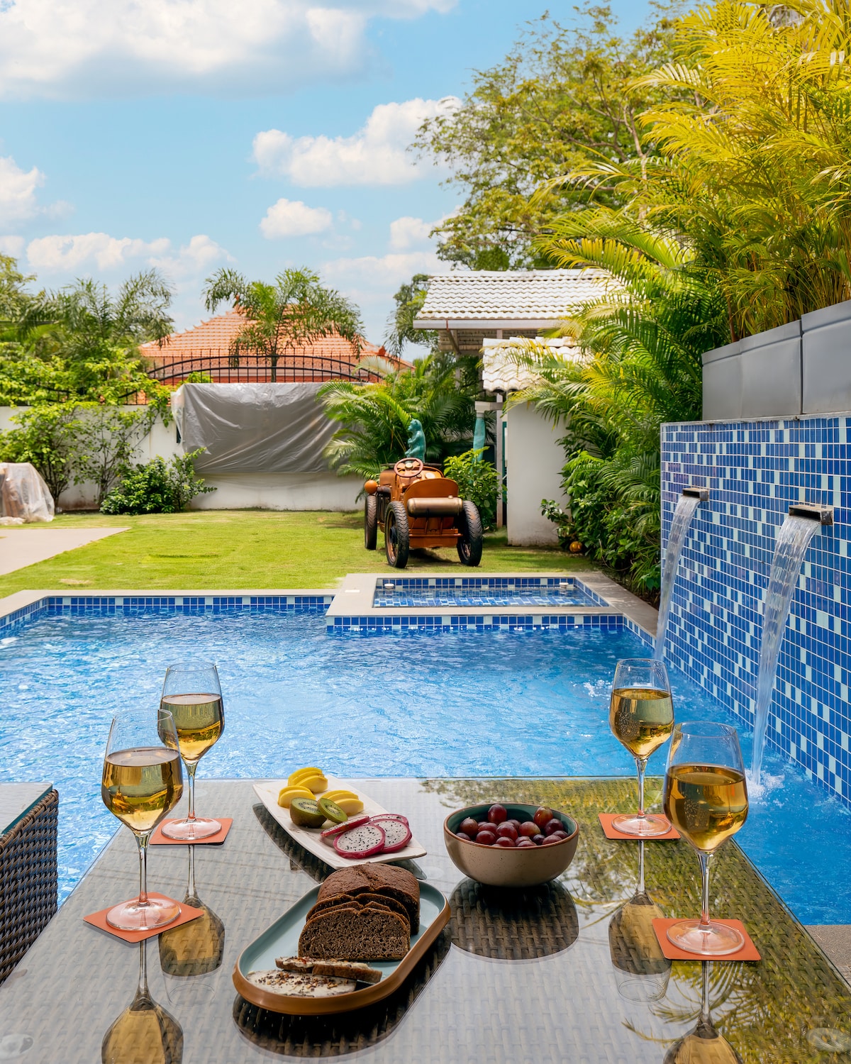 Välkommen till en liten bit av paradiset! Din vistelse hos oss kommer med alla möjliga njutningar för att göra denna semester din bästa någonsin — inklusive en vaktmästare och kock på plats, 24x7 Power Backup och utomhusbio Villan sköts inte av en ansiktslös organisation utan av välresande invånare i Goa som gör det möjligt för dig att uppleva alla dess hemligheter — från de bästa stränderna och wellness-utflykter, till fina restauranger, de bästa festerna, eller organisera någon form av privat scen som du kanske vill ha!