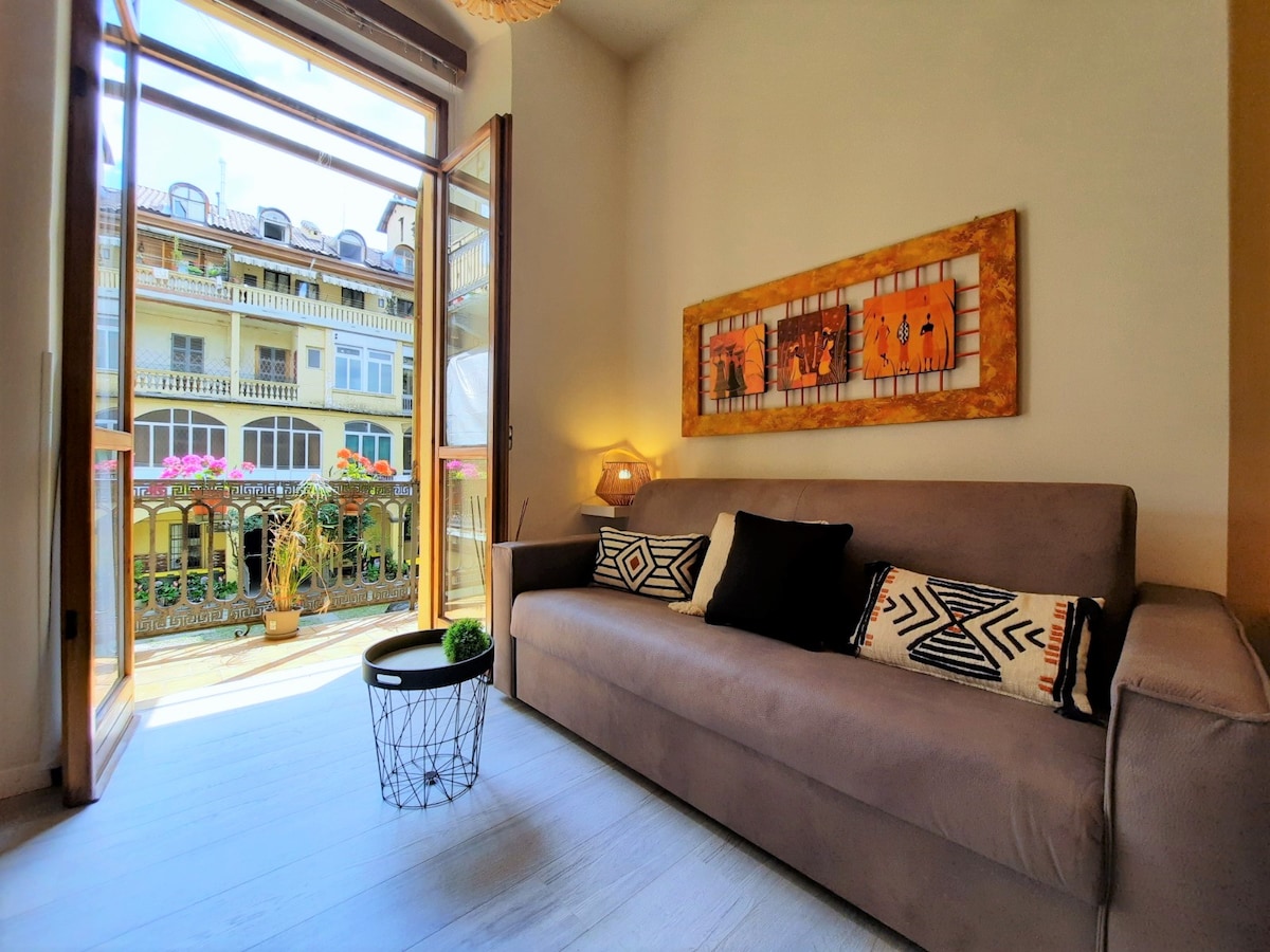 UNIKA FÖR: ❤️ DESIGNEN ❤️MIN RENLIGHET. ❤️Den KONTINUERLIGA STRÄVAN EFTER FÖRBÄTTRING (4 års arbete) DESIGNERSTUDIO med balkong i ett NATTLIVSOMRÅDE (typiskt för barer och restauranger), i början av GAMLA STANs promenadtur, 4 minuters promenad till TUNNELBANAS- OCH TÅGSTATIONEN PORTA NUOVA, 7 minuters promenad till Valentino PARK.