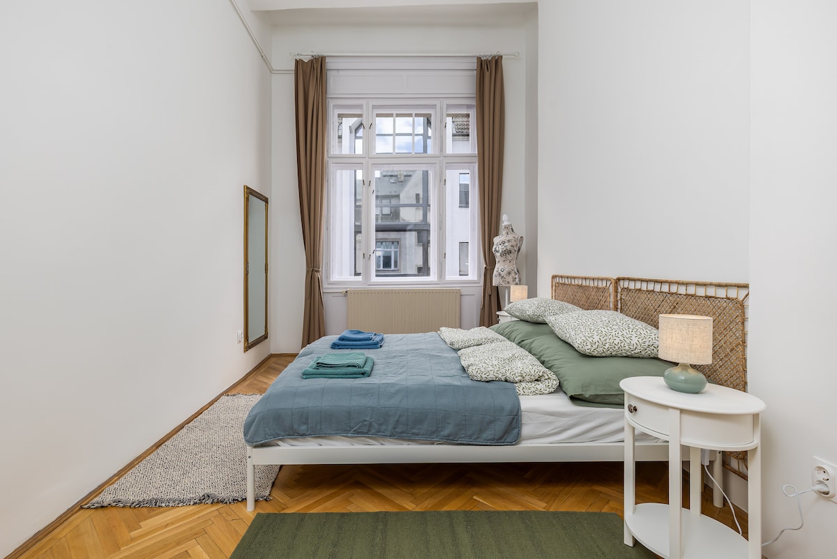 När det gällde att inreda denna mysiga lägenhet var idén att skapa något exceptionellt för mina framtida gäster i en delikat stil och erbjuda ett boende fullt av bekvämligheter och unika detaljer. Med ett sovrum med dubbelsäng och ett rymligt vardagsrum är det perfekt för par och ensamresenärer. Det är bara några steg från Donau i det bästa området i det ikoniska 13:e distriktet, så du kommer att vara mitt i stadens centrum när du kliver ut ur byggnaden. Så kom in och ta en titt!