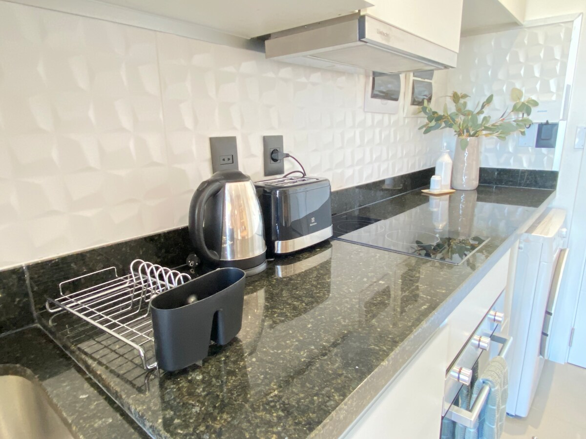42 m² med privat balkong * 3 minuters gångavstånd till kaféer, restauranger och köpcentrum * 1 sovrum + bäddsoffa * Dedikerad arbetsyta * 1 smart-TV * Nespresso-kaffebryggare * Tvättmaskin i enheten * Flygfrysare * Dörrvakt dygnet runt *Denna enhet har ingen parkering inne i byggnaden. Bekvämligheter * Pool. * 2 BBQ / Evenemangsrum (1 utomhus och 1 luftkonditionerad) * Gym * Biograf * Arbetsyta / Coworking-område Lägg till min annons i din önskelista genom att klicka ❤ på längst upp till höger.