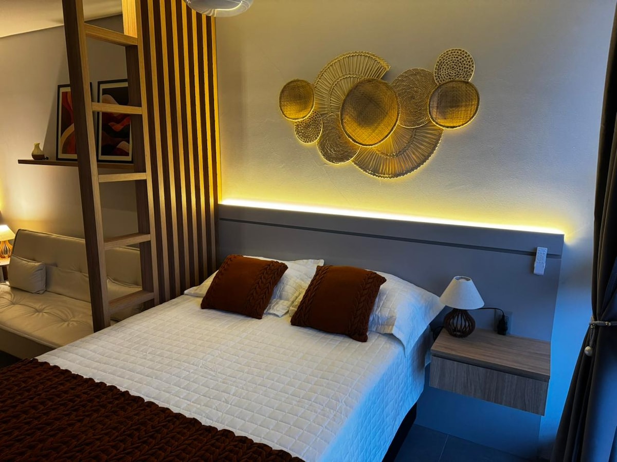 Vackert loft. Utsikt över det sociala området. Privilegierat läge intill Ramblas Atlântida, 100 meter från Planeta på Av. Centralt, ed. Livin Resort. Rymmer 3 till 4 personer, butiker och restauranger i närheten. Täckt box. -Infra: Simbassäng, fitnesscenter, bastu, 6 balsalar, termisk pool, lekplats. -Contém: Smart-TV, WiFi, ugn, mikrovågsugn, luftkonditionering, kylskåp, spis, huva och redskap. Sänglinne och 1 uppsättning handdukar ingår. - Andra observationer: Husdjur stöds inte 1 dubbelsäng + bäddsoffa.