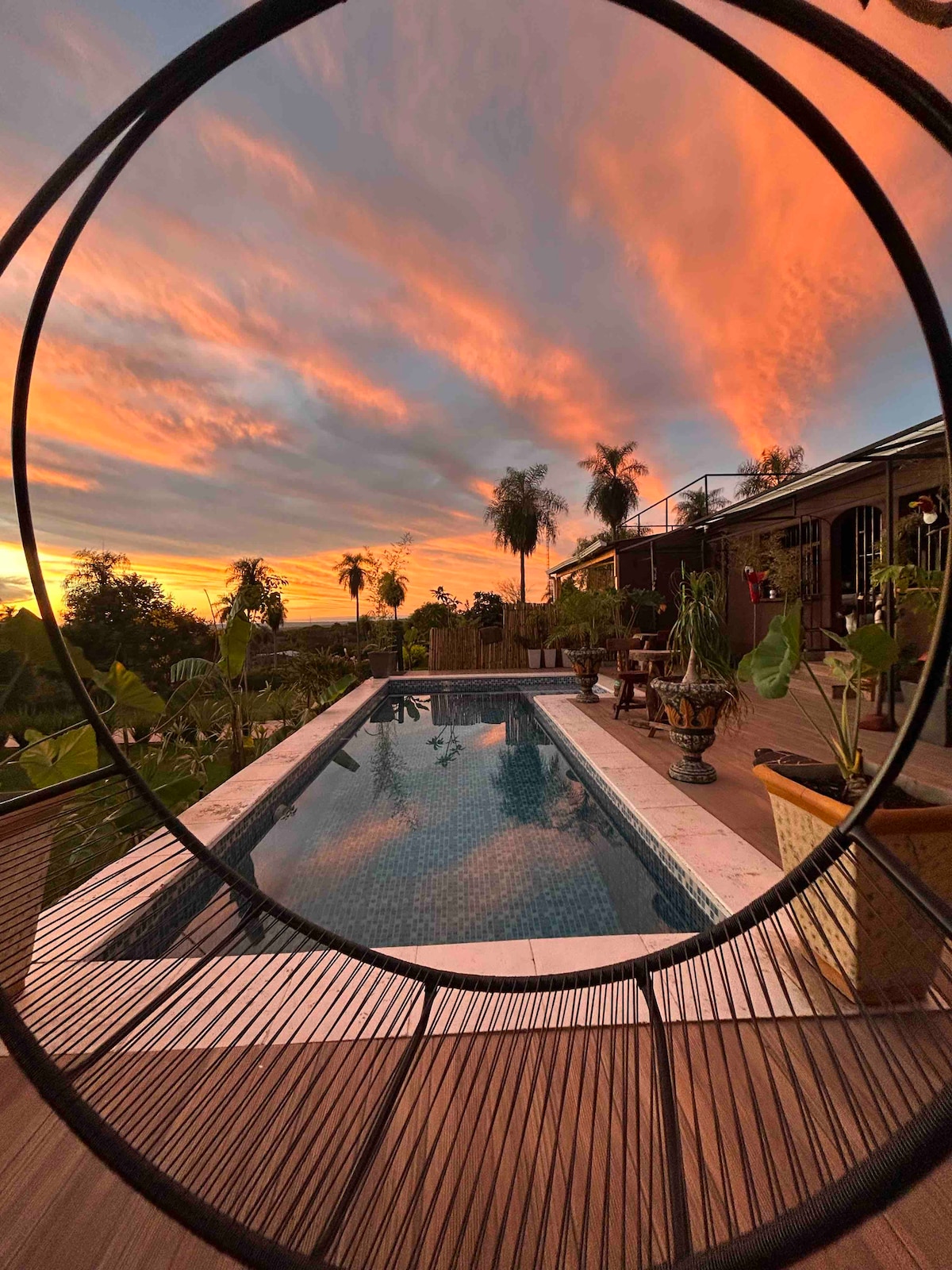 Ungefär en timmes bilresa från Asuncion. Cerro Kavaju i Caacupe är ett skyddat naturområde. Du kommer att njuta av den natursköna bilfärden när du passerar genom foten av bergen, träd och olika djur på gården (hästar, getter, kor, lokal fauna med vilda djur). Speciellt för unga familjer med barn för en gårdsupplevelse. Njut av hela denna ranch med alla nödvändiga bekvämligheter, grill för grillning, koppla av i paraguayanska hängmattor och en pool. Föreställ dig själv njuta av asado med utsikt över de vackra solnedgångarna i bergen.