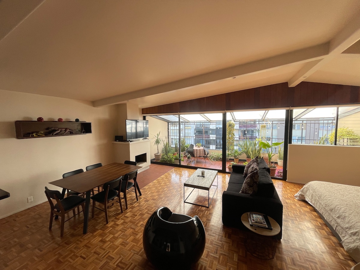 Fantastisk vindsvåning belägen på en gammal klädesfabrik renoverad som modern LEED lägenhetsbyggnad. Denna byggnad återvinner allt vatten och återanvänder det för det urbana jordbruksområdet på taket. Loftsmöblerna kurerades noggrant för att göra området bekvämt samtidigt som det är elegant och njutbart. Takterrassen har 360° utsikt över CDMX, med direkt utsikt mot skyline av Reforma byggnader. Grannskapet Santa María är väl ansluten till Polanco, flygplatsen, Chapultepec, Condesa, Juárez och det historiska centrum.