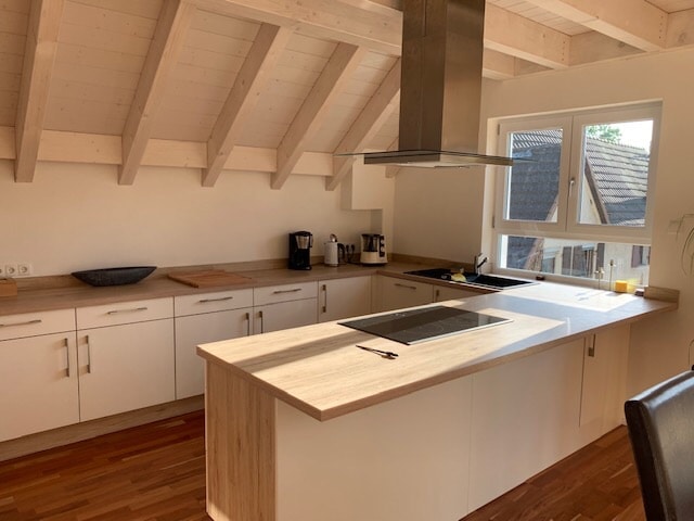 Vår semesterlägenhet ligger på första våningen i ett 2-familjshus hus och ligger i utkanten av staden precis framför vingårdarna i södra Baden. I det omedelbara närområdet finns ytterligare tre bostadshus med flera bostadsenheter. Tillsammans skapar vi ett litet, generationsövergripande bostadsprojekt.