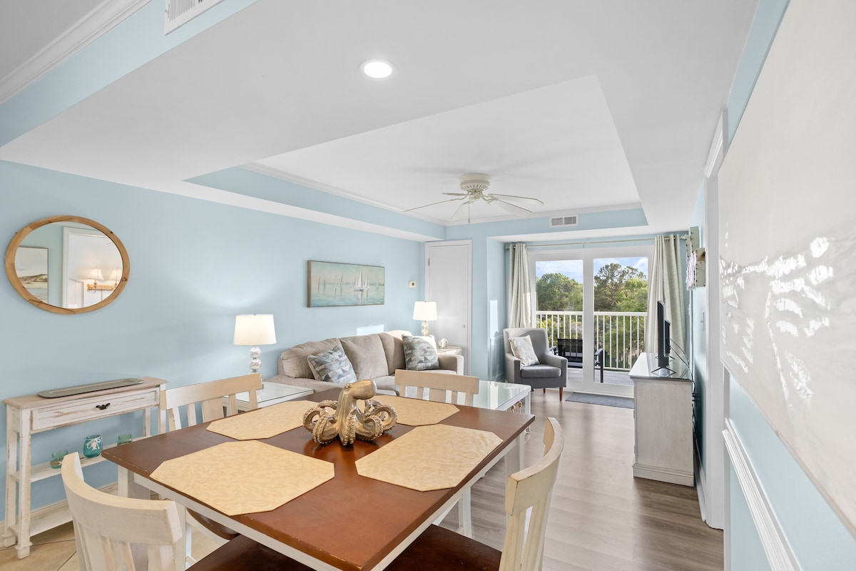 Welcome to your coastal oasis in Pawleys Island! Nestled in the heart of this charming Lowcountry community, this exquisite condo offers a perfect blend of modern comfort and Southern charm. You are greeted by an open living space adorned with coastal decor. The space offers a comfortable living and dining area with a FULL kitchen to make your stay more like home. The bedroom offers two comfy queen sized beds, dresser, walk-in closet, and easy access to the bathroom with tiled shower.