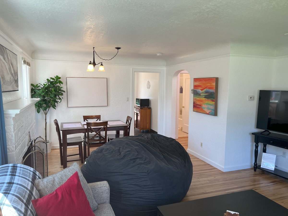 Vår Hideaway-studio är en mysig studiosvit som ligger inom gångavstånd från centrala Salem, delstatens Capitol och Willamette University. The Hideaway har total avskildhet, med egen ingång, badrum, pentry och tvättmaskin och torktumlare. Vårt grannskap ligger tillräckligt nära centrum för att njuta av promenader till lokala restauranger, butiker, Riverfront Park och mer. Motorvägen I-5 ligger 5 minuters bilresa från vårt hem, vilket gör det enkelt att ta sig till närliggande städer. *Se vintern/våren 2026 notering i fastighet*