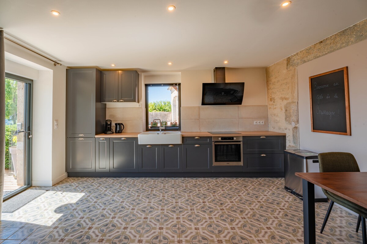 Historiskt seigniorial hus, där vi byggde vår vinkällare och inrättade ett enskilt livsområde, arbetar på komfort utan att glömma andan på platsen. Det rymliga vardagsrummet, med ett fullt utrustat kök, är en välkomnande och tyst plats, utanför tiden. Detta rum öppnas på en stor balkong, vänd mot öst. På bottenvåningen finns 3 mysiga sovrum, organiserade med dubbelsängar eller två enkelsängar, separata toaletter och luftkonditionering. En flaska vin från domaine erbjuds för ditt välkomnande.