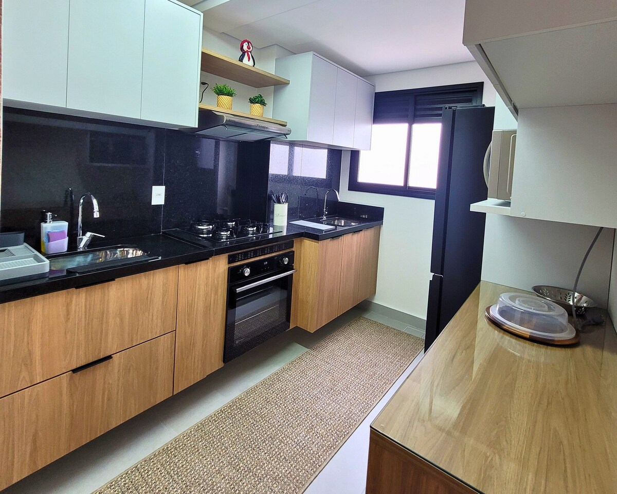 📍 Gör allt till fots! * 50 m från Carrefour, Extra, apotek, marknaden och otaliga barer, restauranger, McDonald's, Habib's och Av. Costa e Silva. 🌊 FANTASTISK UTSIKT - vid havet - Guilhermina! 🕗 Flexibel in- och utcheckning, ingen avgift och inom möjligheterna. 🗝️ Självincheckning 📶 Fiber-Wi-Fi - 400 Mega. 📺 SmartTv-50 Pol. 🍖 Grillkit. 🪟 Glasad balkong. 🛌 Sängkläder och handdukar – 100 % bomull