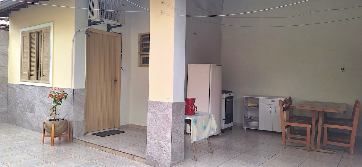 Fristående edicule 5 minuter från Aviação strand, med badrum, varm dusch, med smart TV ansluten till hi-fi; luftkonditionering, anslutet utrymme med spis, kylskåp, bord, stolar, kaffebryggare, luftfritös, smörgåsmaskin, allt exklusivt för gäster, plus handfat och tank. Jag har två äldre och fogliga hundar, garage för en bil till i kö, förutom min; balkong av huset tillgänglig för gäster.