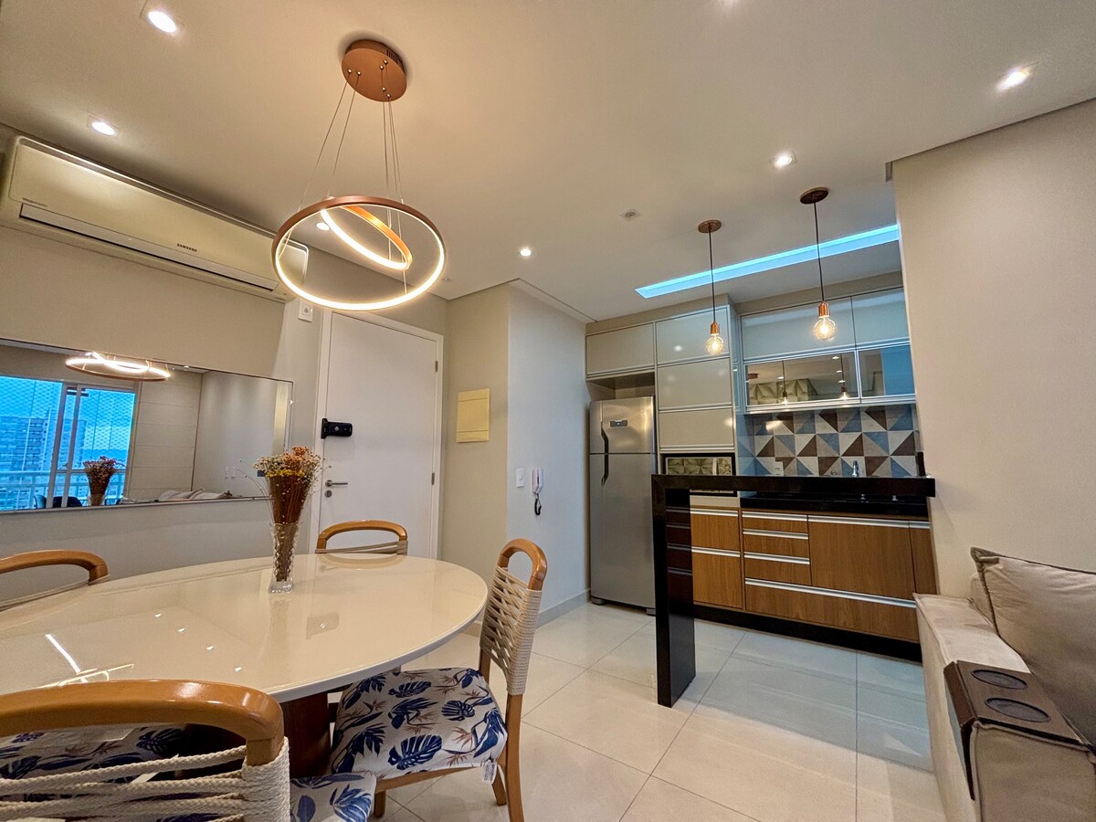 Denna 55 m² stora lägenhet är perfekt för par och chefer på affärsresor. Här finns allt du kan förvänta dig av en lägenhet: praktiskhet och teknik. För dem som kommer att tillbringa nyårsafton i Santos, kan du njuta av festligheterna utan att ens lämna byggnaden. Från poolområdet kan du njuta av havsutsikten, fyrverkerierna och stadens festliga atmosfär utan att behöva hantera trafik, folkmassor eller en tröttsam pendling efter fyrverkerierna.