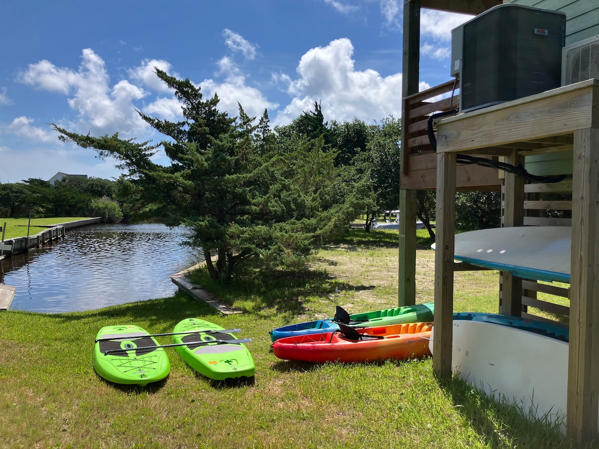 Charmigt OBX Soundfront-boende med bubbelpool och kajaker