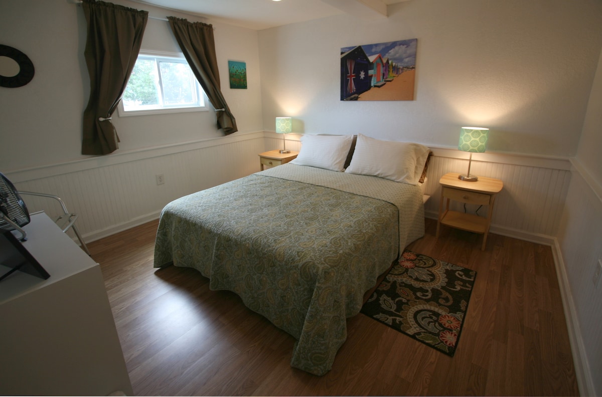 *Inga husdjur*. Happy Ours ligger nära stranden och Sound, restauranger, kaféer och lokala barer. Du kommer att älska mysen. Vårt boende passar bra för par och ensamresenärer. Queen bed, 32” Roku TV i sovrummet, loveseat & bistrobord för 2, 24” Roku TV i vardagsrummet/köket. Whirlpool tvättmaskin/torktumlare i full storlek. WiFi. Poolpass på sommaren. Utomhusdusch, underhusdäck, fiskrengöringsbord, slang. Kylare, strandstolar och boogie boards. Ingen rökning tillåten i boendet, inga gäster (max 2 sovplatser).