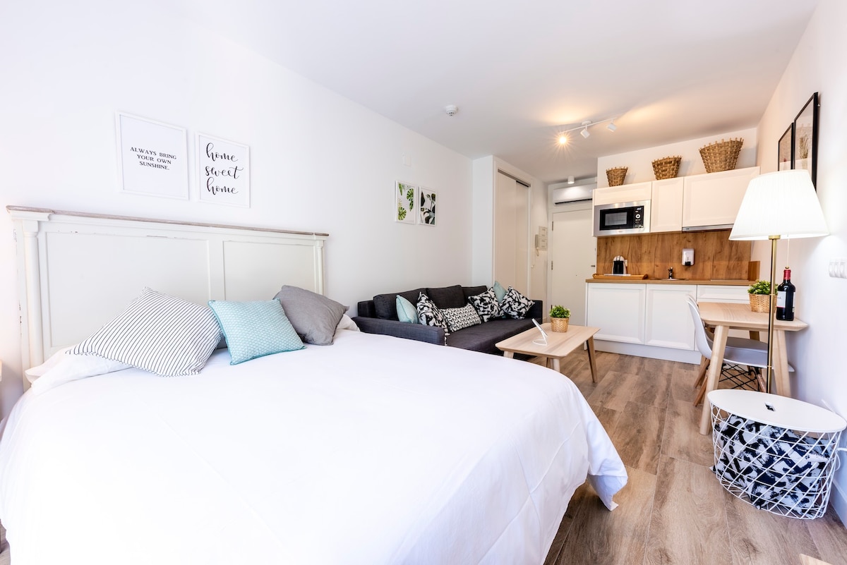 Denna bekväma lägenhet erbjuder 51 m² utrymme för upp till 4 personer. Dess sovrum med en en dubbelsäng (150x200), vardagsrum med en bäddsoffa (160x200), och modernt badrum med standard eller tillgänglig dusch gör denna vistelse till ett perfekt sätt att uppleva Granada. Det erbjuder också ett fullt utrustat kök med hållbart kaffe och te och en tvättmaskin, så du har allt du behöver för maximal komfort och minimal stress.