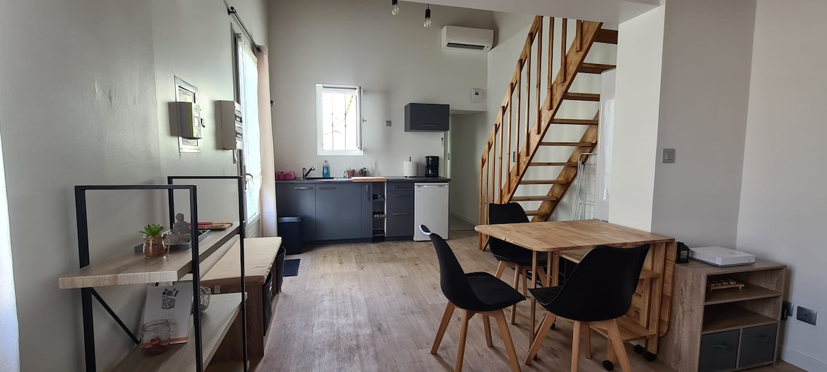 LILLA HUS "Le bleu de Pagnol": - för mer information, gå till vår webbplats lebleudepagnol - 18 m² ljus studio i anslutning till vårt hus - terrass för att äta utomhus, solstol - 1 bäddsoffa i huvudrummet och 1 bädd 140 på mezzaninen - utrustat kök, TV, wifi - kylskåp, mikrovågsugn, induktionshäll, Senseo, vattenkokare - badrum med en stor italiensk dusch, handfat och toalett - Gamla hamnen 20 minuter till fots, 5 minuter med cykel eller buss