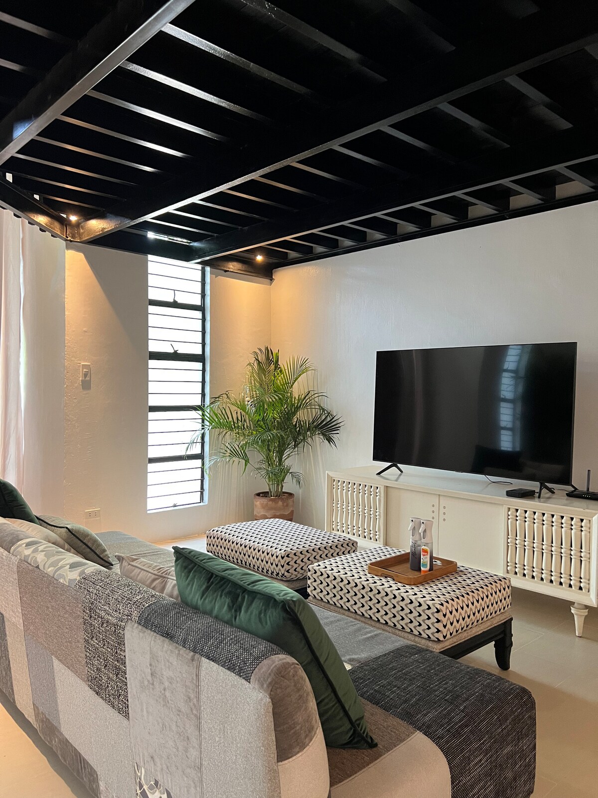 Mysigt 100 kvm (2 våningar) minimalistiskt boende i Apalit, Pampanga — perfekt för 4–6 gäster. Har Wi-Fi, luftkonditionering, smart-TV, vardagsrum, kylskåp, strykjärn, strykbräda, kök med mikrovågsugn, vattenkokare, spis (gratis 1 butan), riskokare, gratis kaffe och vatten, tvättmaskin och torktumlare. 2 utvändiga övervakningskameror. 📍Gångavstånd - Huvudporten - MCGI - Skola – Robinsons Easymart - Premier Hospital - Caféer och lokala restauranger ✅Grabfood ✅Flygplatstransfer 🔐Incheckning: 14:00/Utcheckning: 11:00. ❌Inga husdjur tillåtna inomhus.