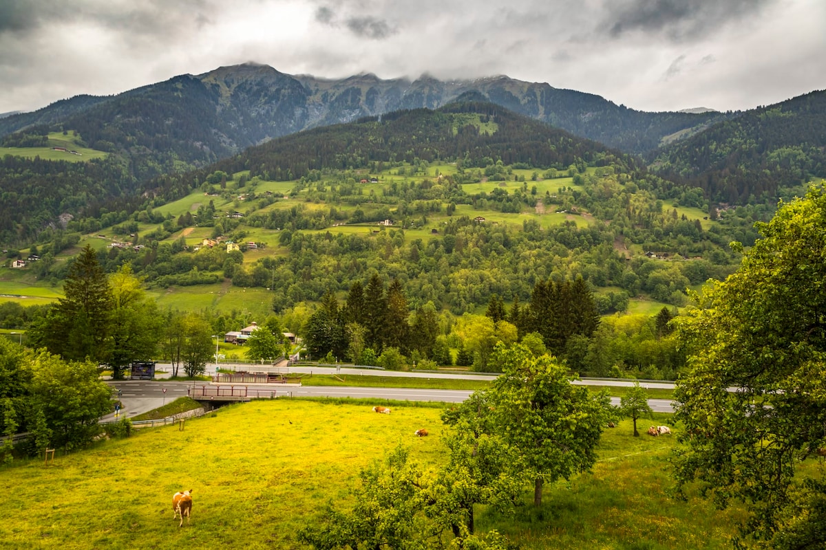 Ljus lägenhet med charm och utsikt över bergen
