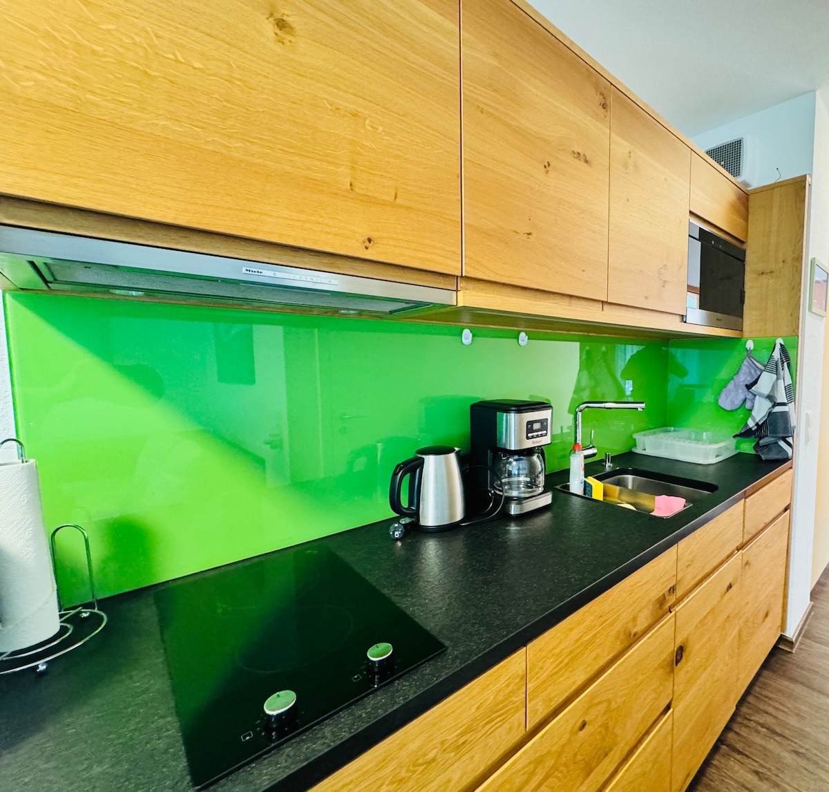 PÄ 1000 meters höjd vÀlkomnar vi dig med en fantastisk utsikt över Schonach och Schwarzwald. Koppla av i en lÀgenhet som totalrenoverades 2023 med toppmodern inredning och stor kÀnsla för detaljer. Oavsett om det Àr ett riktigt trÀd i vardagsrummet, ett blommigt tÀcke över sÀngen, korsvirkade vÀggar, en regndusch i skogen eller ett Àkta stentvÀttstÀll: designÀlskare kommer inte att bli besvikna av de mÄnga högkvalitativa detaljerna. BelÀgen precis vid skogsbrynet Àr Fabelwald perfekt för naturÀlskare.