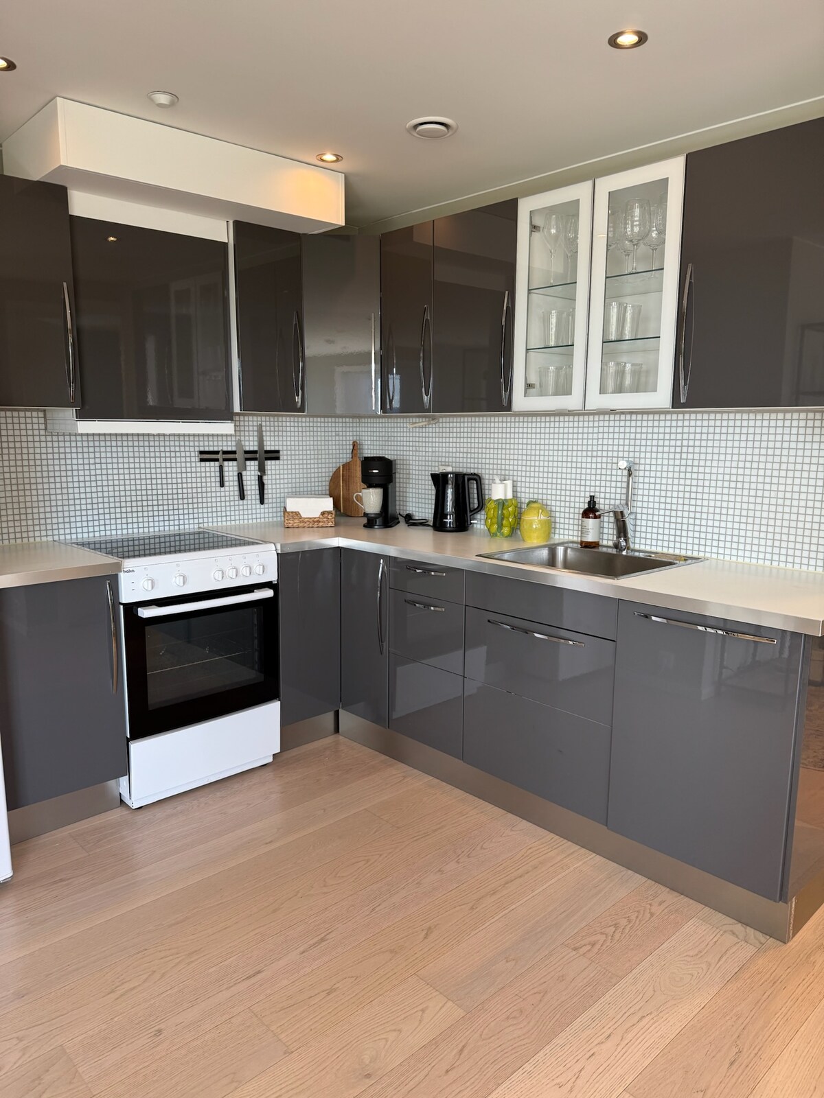 Leilighet med utsikt i 5.etasje leies ut for kortidsleie. Kort om leiligheten. Fint kjøkken, delikat bad, stue, 2 soverom med gode kontinentalsenger og nydelig utsikt fra innglasset balkong. Størrelse på leilighet: BRA: 63 m2 Stue: Sofa, 65” tv med apple boks, tv kanaler og wifi. Bad; vask & tørk kombimaskin, dusj, gulv varme, hårføner. Kjøkken: Kjøleskap, oppvaskmaskin/tørketromler, stekeovn, kokeplate, kjøkken avtrekkkaffetrakter, dekketøy. Håndklær Parkering med lademulighet.