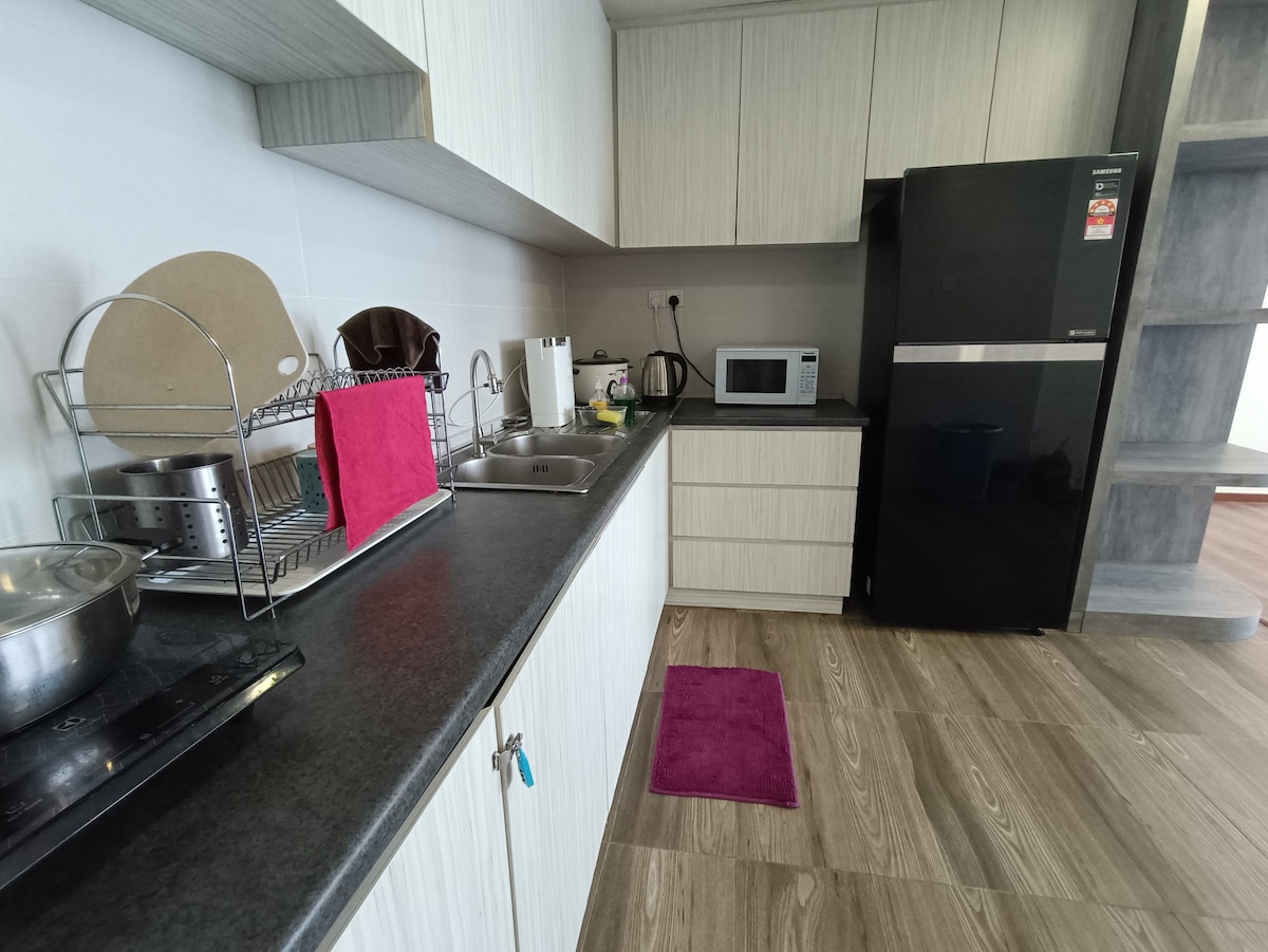 Jazz Suites 3 Vivacity, ovanpå Kuching Citys största köpcentrum. 7th Floor City and Airport View. Enhetens höjdpunkt. 1. Gökvattenrenare 2. Tvättmaskin 3. Bekväma sängkläder, vår madrasser med täcken 4. 55" smart-TV med EvPad3 5. Fullt utrustat kök med huva, spis, ris spis samt mikrovågsugn. 6. Handdukar tillhandahålls 7. Fullständiga väsentliga bekvämligheter som schampo, servetter, toalettrulle. 8. Utsikt över staden. Vänd mot flygplatsen 9. Fabreeze och Dettol spray efter varje utcheckning