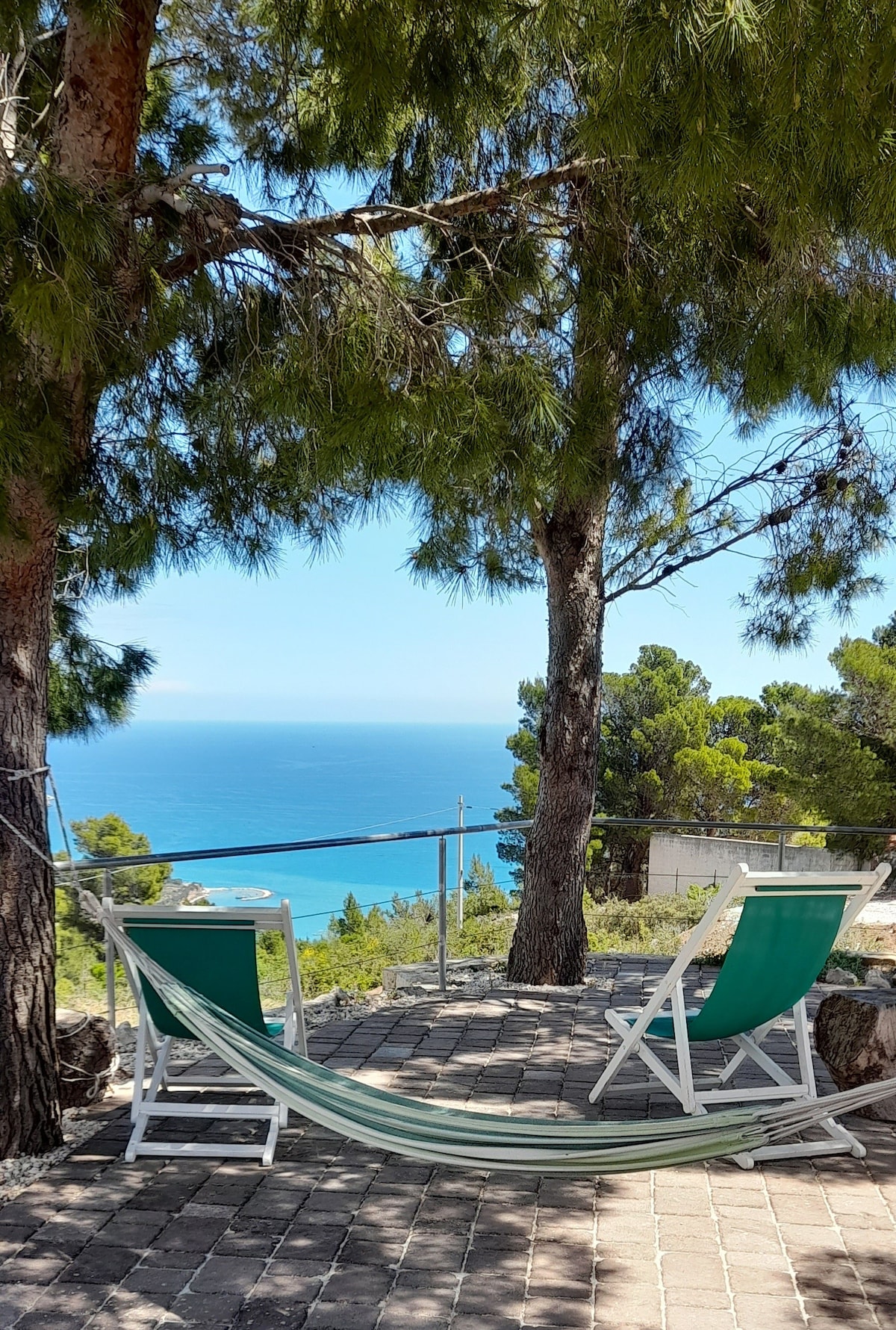 Casina är omgiven av grönska. Perfekt plats för 2 personer som älskar lugn och ro. Gästerna kan vistas i den intilliggande verandan, eller flytta till gräsmattan i skuggan av jordgubbs trädet och njuta av den fantastiska utsikten. Casina är på två våningar: på bottenvåningen finns kök och badrum, på övervåningen finns sovrum och badrum. De två våningarna är förenade genom en extern trappa. Panoraman kan även beundras bekvämt från sängen tack vare fönstren som vetter mot byn och havet.