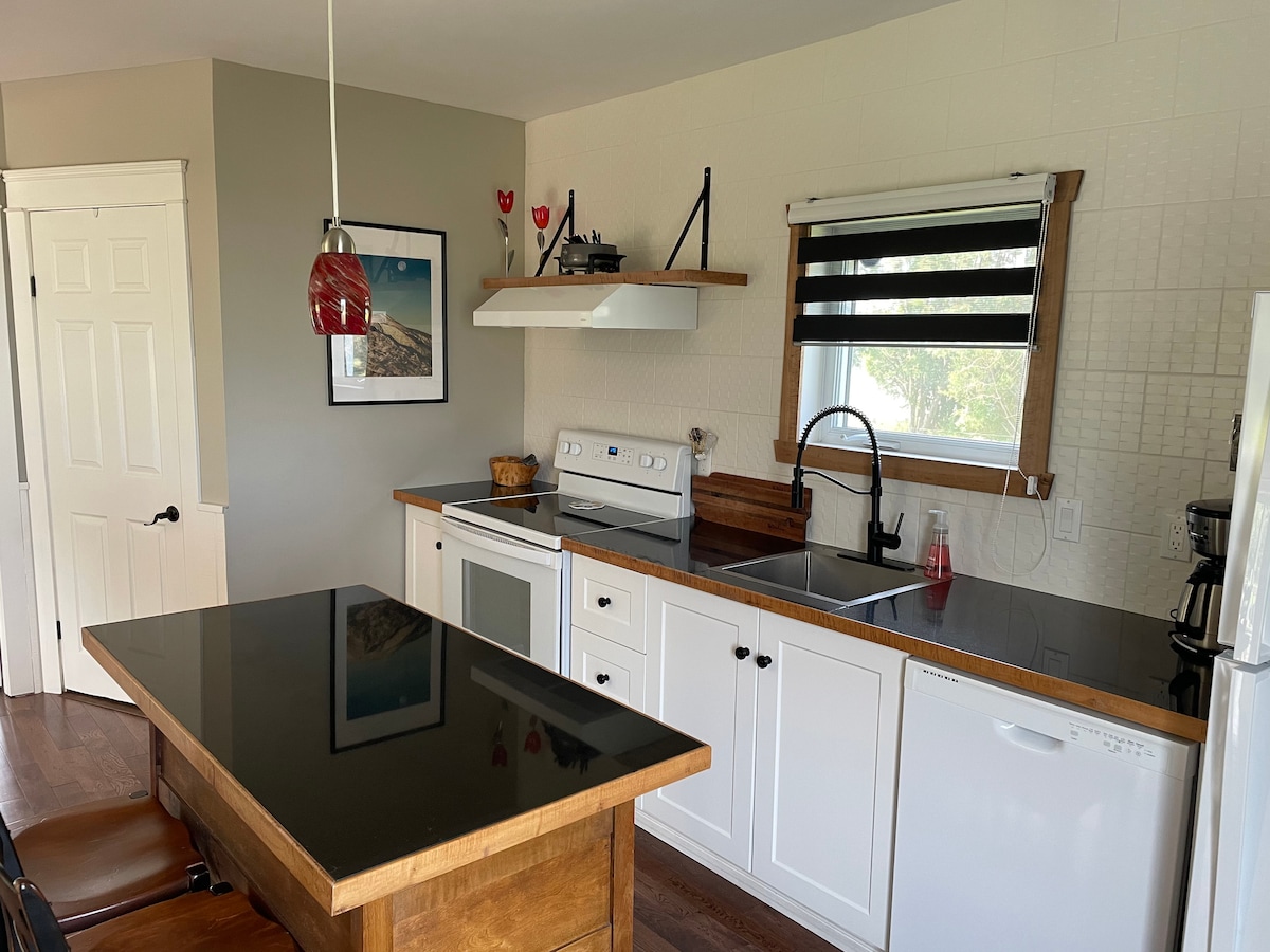 Vi ligger på flodsidan, stranden är din bakgård. Du har din egen ingång och en balkong vid sidan av havet, för att ta en cocktail eller frukost. En plats för drömmar där du kan koppla av! Massor av aktivitet: vandring, vingård, ubåt , Métis trädgård,Mont-Comi (skidåkning). Vi är direkt på konstens väg, så mycket galleri i närheten. Gångavstånd till hantverksbryggeri, matsal. (nr. 304573)