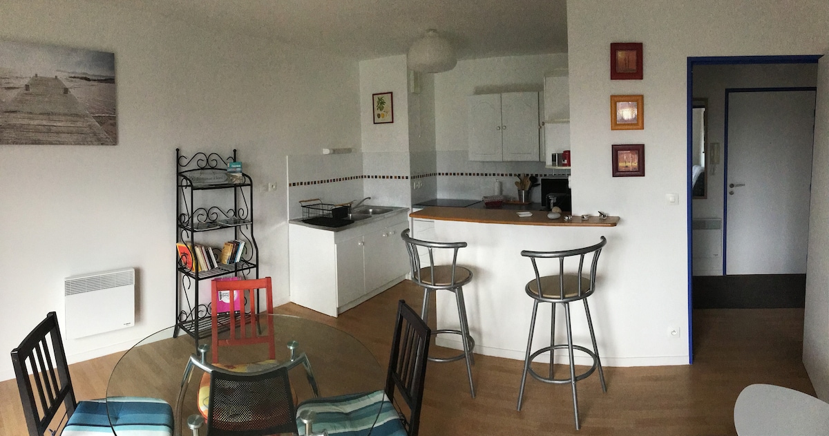 I en lägenhet på första och översta våningen i ett litet och mycket lugnt boende, kan du njuta av stranden och utsikten över Roscoff-bukten. Lägenhet på 54 m² med: vardagsrum (kök, bäddsoffa 140), sovrum (säng 160), toalett, duschrum, loggia. Privat parkering, cykelskjul, wifi. På sommaren, gratis buss till stadens centrum (kyrka 1,5 km - thalasso 800 m) Att besöka: Ile de Batz, Morlaix Bay, Carantec, Nord Finistère, surfing i Dossen (7 km).