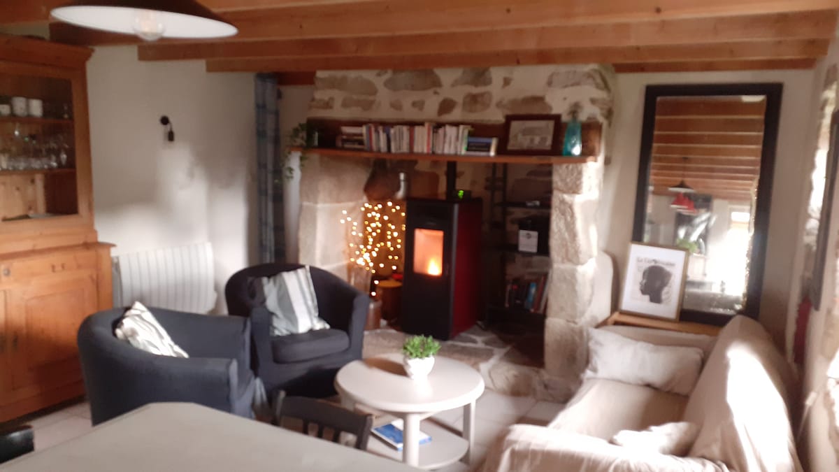 Liz och Simon välkomnar dig till hela din stuga, i denna charmiga och historiska by. Du kommer att ha en privat trädgård och en varm och bekväm interiör. Det är nära till en bageri (frukost ingår ej). Berrien ligger 5 minuters bilresa från en stormarknad i Huelgoat och dess kaféer, butiker och restauranger vid sjön. Berrien har ett vackert landskap i Huelgoat-skogen och lederna i Monts d'Arrée. Morlaix - 22 km, Carantec/Locquirec 38 km