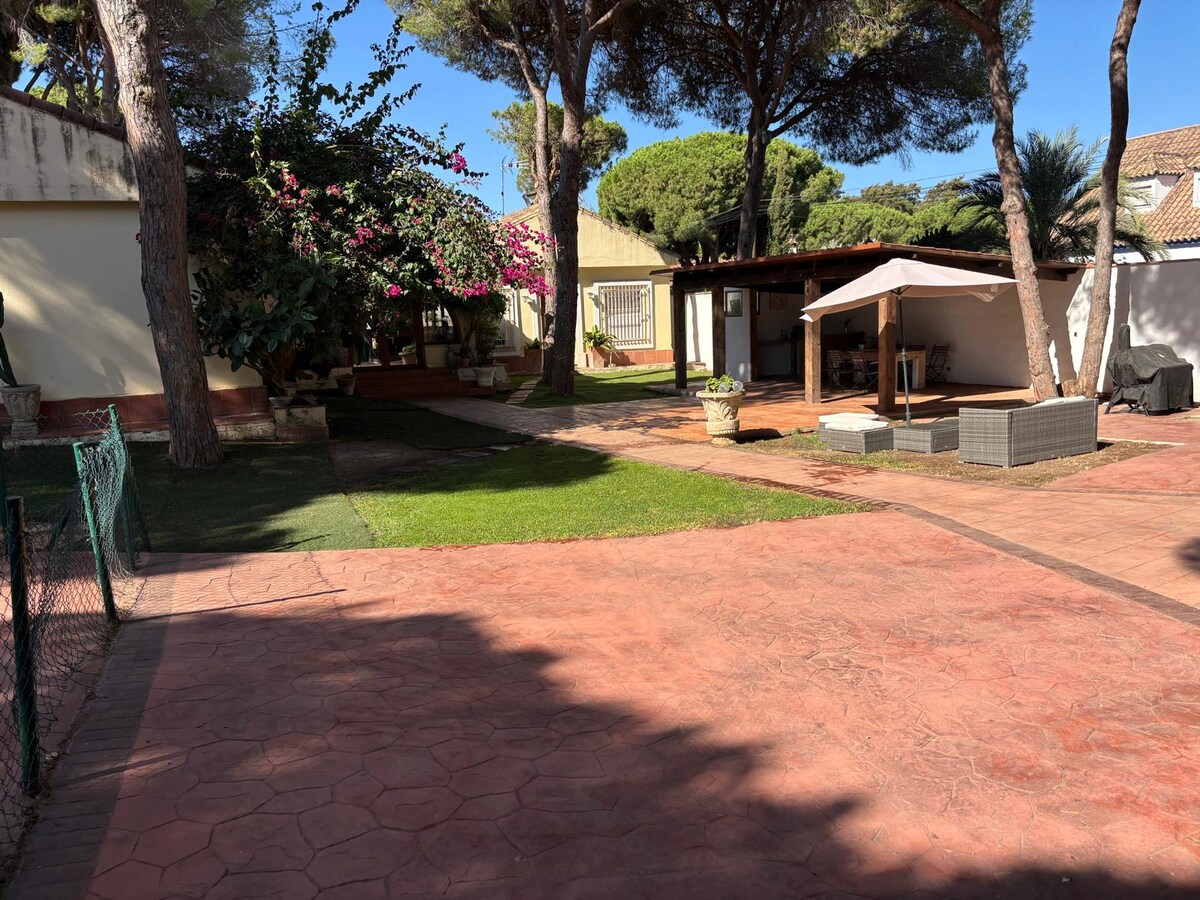 Gran chalet individual con piscina de 8x4 m, jardín muy grande y WIFI de fibra óptica. Dos porches, uno delantero donde disfrutar del atardecer y otro trasero junto a la piscina. Sin escaleras, en una sola planta, ideal para familias y estancias largas. Situado en una calle muy tranquila sin ruidos de coches. Sol, paz y tranquilidad todo el año. Cocina muy amplia y acogedora. Ropa de cama y hogar. A 6 mts en coche de playa La Barrosa, la Loma de Sancti Petri y Campo de Golf Novo. Agua de pozo.