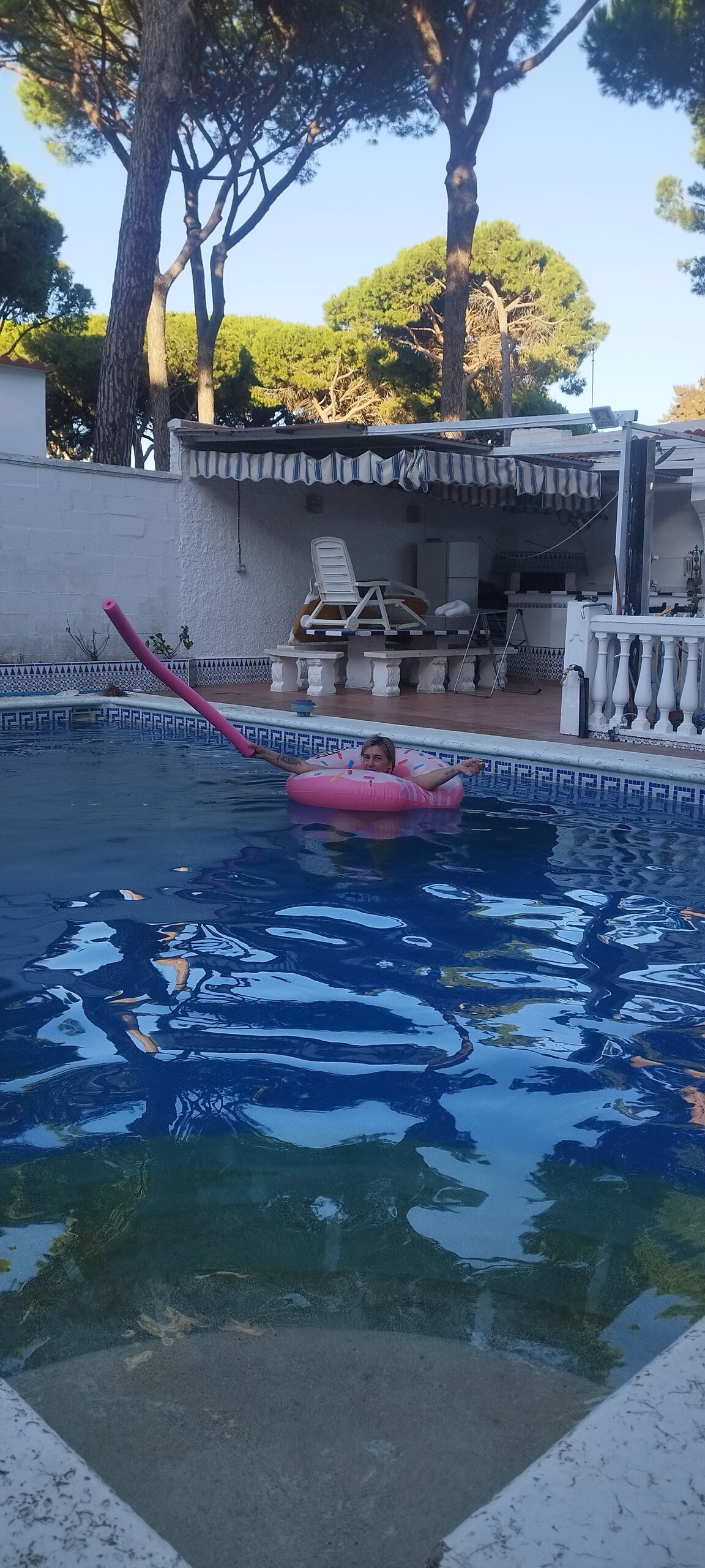 Apartamento en Chalet piscina y parking. Todo en exclusiva y completamente privado para los huéspedes. Dispone de wifi,aire acondicionado, lavavajillas,horno,microondas,cafetera, tostadora,secador del pelo,mesa de billar,smart tv,diana, juegos de mesa, juegos de playa… Supermercado y farmacia a 5 min andando. Playas a 10 min en coche. Parque acuático a 3 min. Máximo 4 personas. Cama de matrimonio y sofá cama. Posibilidad de cuna de viaje y trona de bebé. Se aceptan mascotas.