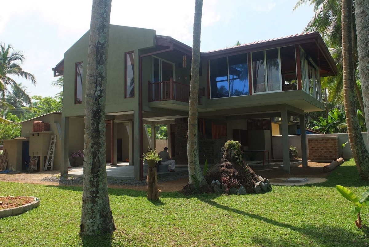Borta i frodig grönska hittar du "Cottage" på Kogallasjön, mindre än 1 km från stranden. Villan är privat med en av de bästa utsikterna över sjön. Smakfullt restaurerad ex statsman's Bungalow kurerade för att ge en sann lankesisk upplevelse. Villan har 3 rum med eget badrum och sjöutsikt. Master-sviten är hisnande! Villan kommer med din egen butler (Yohan) och kock på begäran. 8 minuter 🚶 strand (600 m) 10-15 minuter - Ahangama 15 minuter -Unawatuna 15-20 minuter Weligama