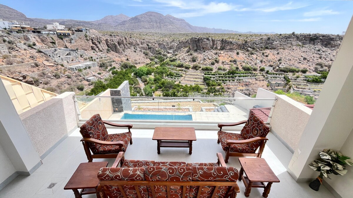 Beläget i ett område som är porten till civilisation och natur , och erbjuder en rik typ av avskild lyx med utsikt över bergen nära området på ett sätt som överträffar förväntningarna hos en modern resenär, har det en bra design med utökat landskap, medan gratis wifi, en privat pool, barnspel, en basketplan och ett grillområde finns tillgängliga. Du kan påbörja din resa på fastigheten och besöka kultur- och kulturminnen i staden Nizwa, inklusive Nizwa slott och Amman Museum genom tider ,.