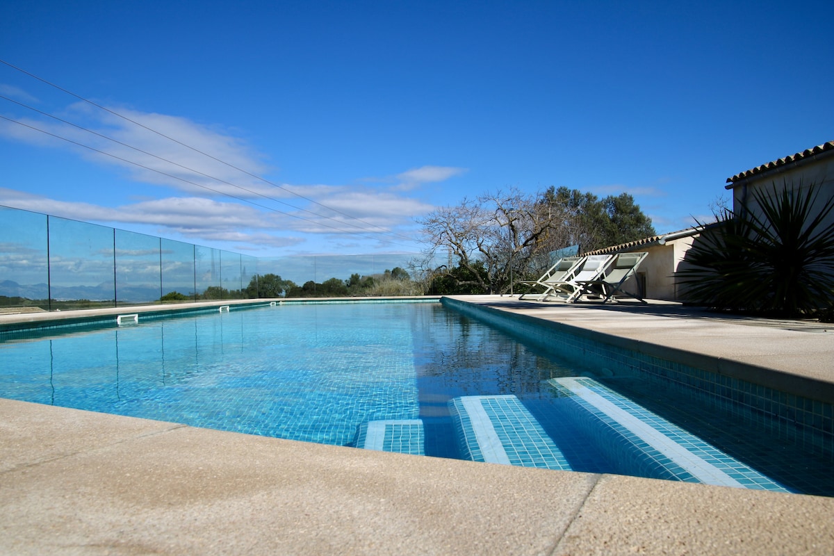 Ursprunglig rustik egendom, mer än 150 år gammal, belägen på södra Mallorca, mellan två vackra byar: Ses Salines och Colonia de Sant Jordi., , Road har en körfält för promenader, jogging. Det finns två små hundar, höns, 1 tupp . Saltvattenpool idealisk för barn AIRE ACONDICIONDO TILLGÄNGLIG: Rum från 14:00 till 22:00 här med avstängningsintervall ungefär varannan timme. Sovrum från 20:30 till 07:30. Om du vill ha det dygnet runt betalar du 50 euro per vecka.