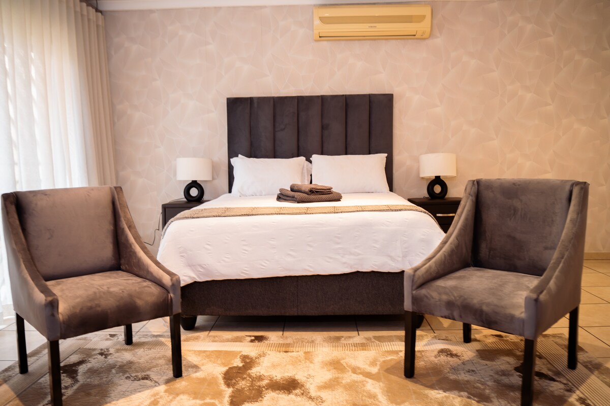 Beläget i Brackenhurst, Alberton. Kliv in i en modern och rymlig 40 kvm självhushållsenhet. Köket är fullt utrustat med spis, ugn, mikro, kylskåp och tvättmaskin. En öppen lounge med en bekväm soffa. Wi-Fi, 32-tums TV med Netflix. Sovrummet har 2 enkelsängar och inbyggda skåp. Badrummet har en enorm dusch, handfat och toalett. Parkering ligger bakom en grind som kontrolleras med fjärrkontroll med tillräckligt med utrymme för 2 bilar. Koppla av runt en glittrande pool eller smutta på en drink under lapan.
