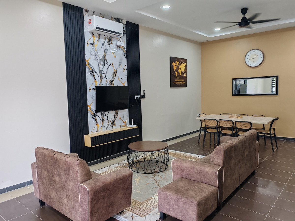 ✨ Easy & Hassle-Free Self Check-In! ✨ No need to collect keys – check in at your convenience! 👮🏻♂️Enjoy peace of mind with 24-hour security guard service in a gated and guarded community. Stay in our fully furnished double-storey house, equipped with full air-conditioning for your comfort. Featuring 4 bedrooms and 4 bathrooms, this home is perfect for families, colleagues, and small gatherings with friends. 我们可以用中文沟通,欢迎咨询!