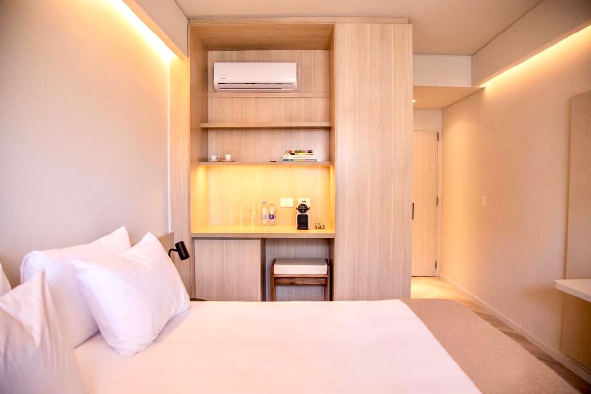 Bright and modern apartment at Hotel Ker San Telmo, located at Av. Colón 455. It features two twin beds, a desk, TV, air conditioning, safe, minibar, and electric kettle. The bathroom includes a bathtub, double sink, and premium amenities. Ideal for comfortable and functional stays in a central area, close to Puerto Madero, San Telmo, and Buenos Aires’ main attractions. Spacious and comfortable space. The hotel offers access to the spa, with sauna and massage services (additional cost).