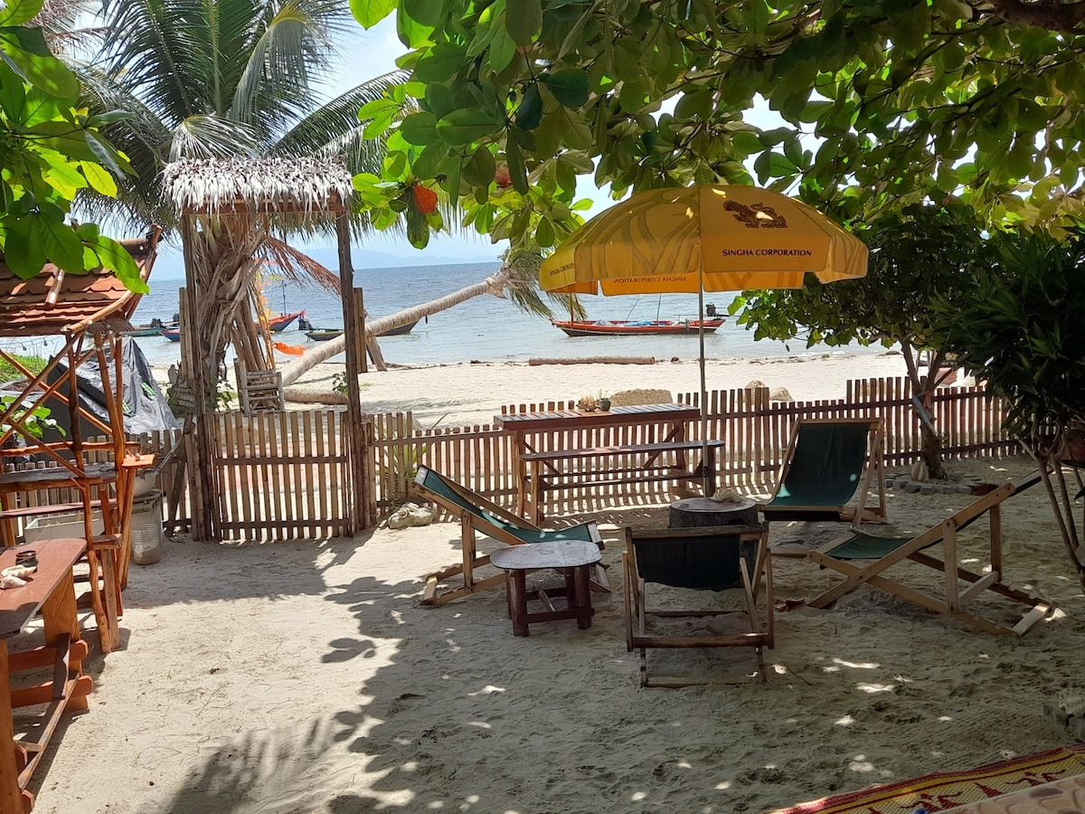 Detta unika ställe har en helt egen stil. Beläget bara några minuters gångavstånd från Kohphangans brygga och alla butiker, barer, i den historiska Gamla stans gata i Thong Sala ,strandpromenad och i lugnt läge på samma gång! Du sover i en dubbelsäng med luftkonditionering och fläkt(myggnät),dusch med varmt vatten och kylskåp ,kaffe/tebänk,gratis WiFi Njut av frukost/brunch i vår hemliga trädgård och utforska vår vackra ö Vi kommer att vara i varje steg med dig,på denna resa!