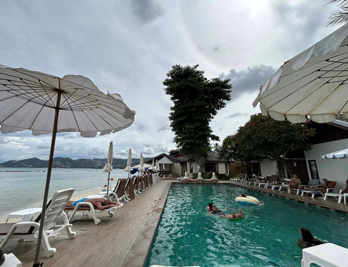 Bungalow renoverad i juni 2024 i en resort med 16 bungalower och 3 små hus med en mysig restaurang/bar. Beläget i hjärtat av en vacker trädgård med en central pool Vårt hotell ligger bara 100 meter från den vackra stranden Maenam och är perfekt för en avkopplande vistelse utan barn Njut av en fridfull miljö där du kan koppla av och läsa vid poolen. Vi står till ditt förfogande för att tillgodose alla dina behov och göra din vistelse så trevlig som möjligt.