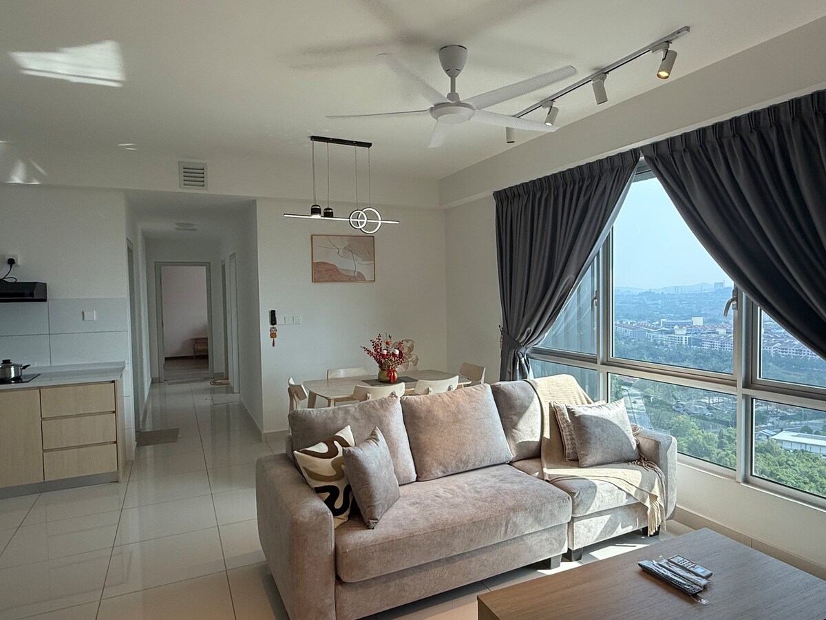 Enhetshöjdpunkter: 1. Ren, modern och snygg design 2. Luftkonditionerad enhet 3. Bekväm säng 4. Höghastighets Maxis Home fiber WiFi 5. Smart-TV med Netflix-konto tillhandahålls 6. Städa badrum med grundläggande toalettartiklar 7. Enkelt kök för matlagning Plats: 1. Beläget precis bredvid Bangi Central och Evo Mall 2. Omgiven av butiker, kaféer och restauranger 3. Enkel åtkomst till huvudvägar och motorvägar Gästupplevelse: 1. Självständig incheckning med tydliga videoguideinstruktioner (ingen receptionist)