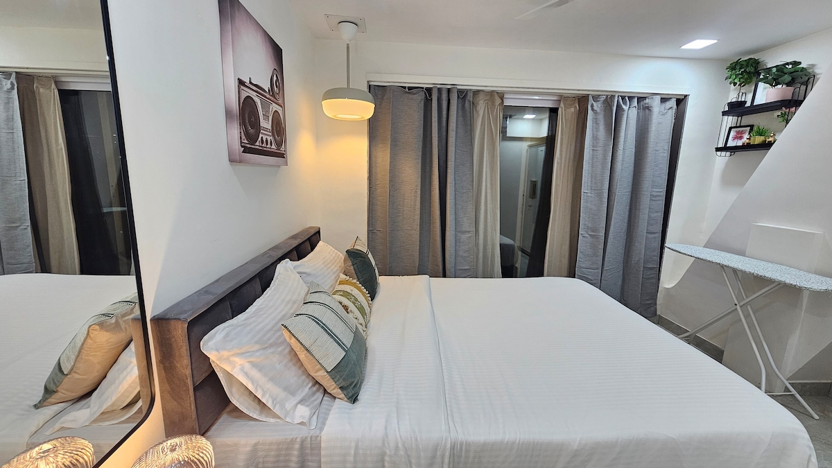 Privat 1BHK. NYRENOVERAT BADRUM. Rymligt och mycket centralt beläget i hjärtat av Bandra, det bästa läget i Mumbai för restauranger, barer, kaféer, shopping och livsmedel. Stort sovrum med en dubbelsäng medan vardagsrummet rymmer ytterligare 2 gäster. Enkel tillgång till kollektivtrafik och promenader vid havet. Jag älskar att träffa resenärer från hela världen och kan till och med visa dig runt. Mitt hus ligger på samma fastighet så jag är vanligtvis tillgänglig för att hjälpa gäster.