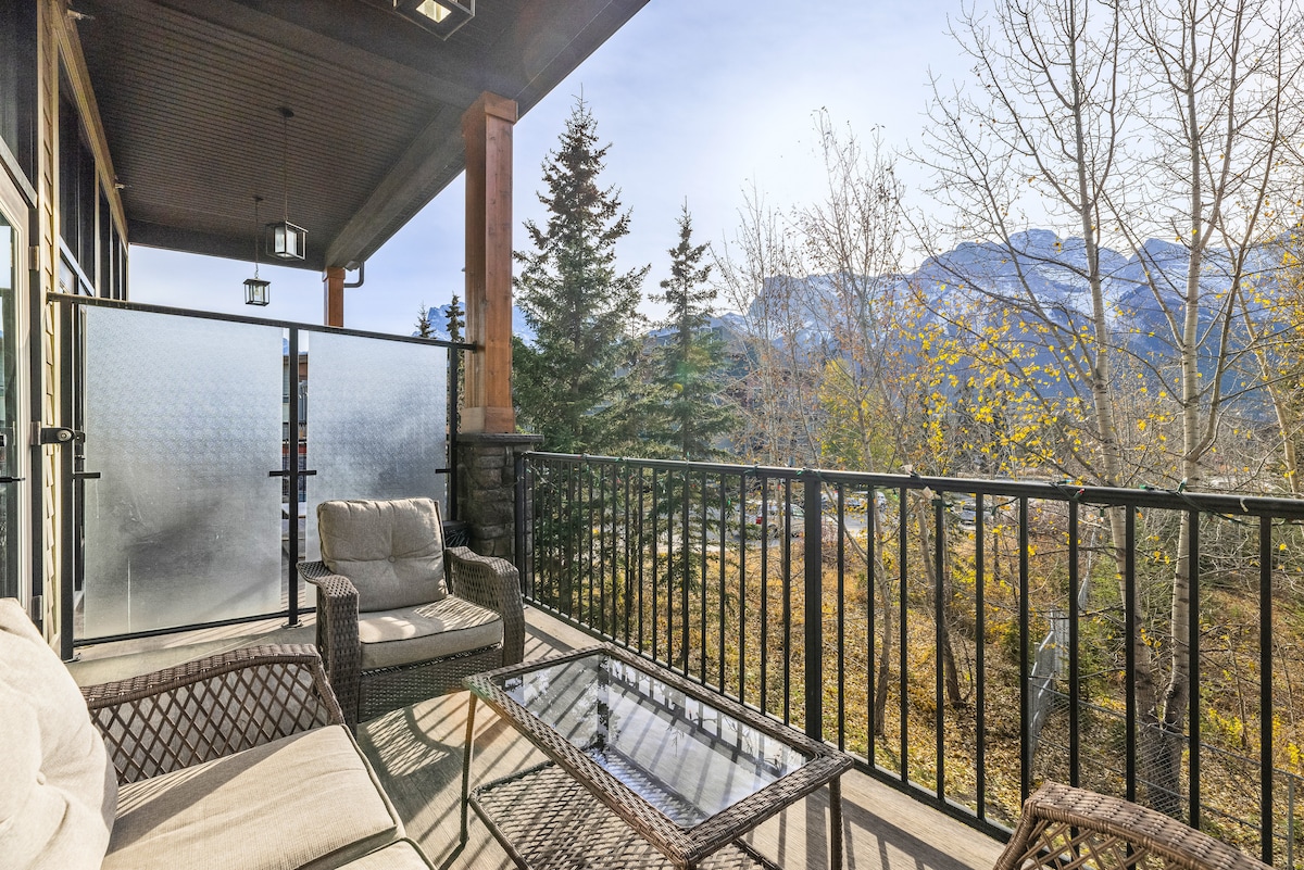 Välkommen till ditt 2 650 kvadratmeter stora rymliga semesterboende i The Mercer, Canmore! Denna ljusa och luftiga hörnenhet är fylld med naturligt ljus. Njut av fantastisk utsikt över bergen från alla rum - inklusive alla balkonger och även badrummen! 😊 Varje sovrum har eget badrum med mysig golvvärme. ⭐️ En erfaren och lyhörd Superhost är värd. 🚗 Två privata parkeringsplatser. 🔇 Inget tåg- eller motorvägsbuller. ✨ Kolla in våra 5-stjärniga omdömen från gäster runt om i världen!